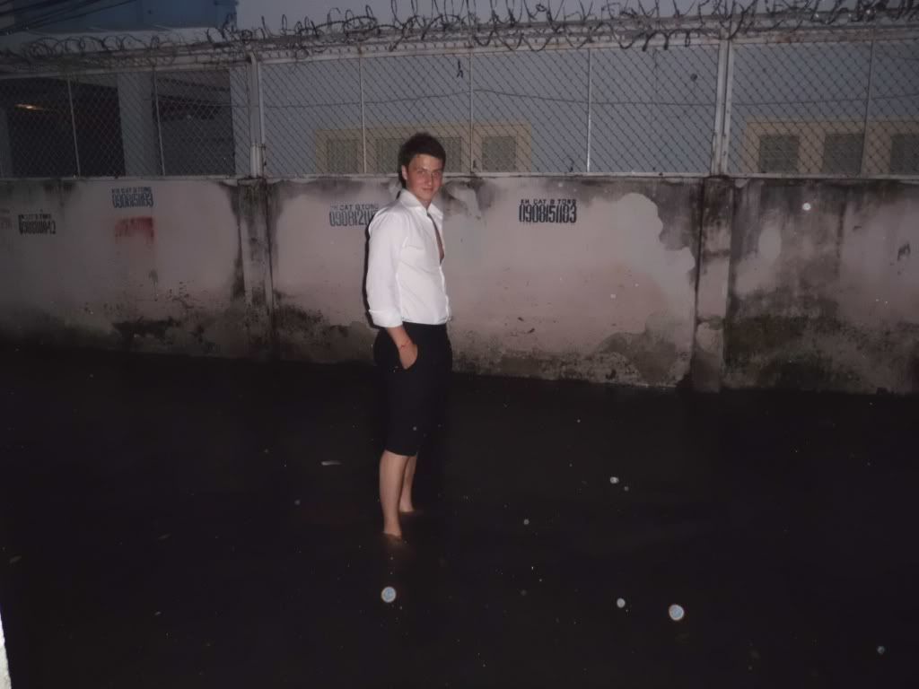 Puis…il y a eu la mousson ! Voici la tenue parfaite et traditionnelle d’un conducteur de scooter lorsqu’il pleut… le fameux K-WAY Disneyland ! Ici, c’est sexy Victor. Moi aussi j’en ai un… et Victor me l’a choisit orange !