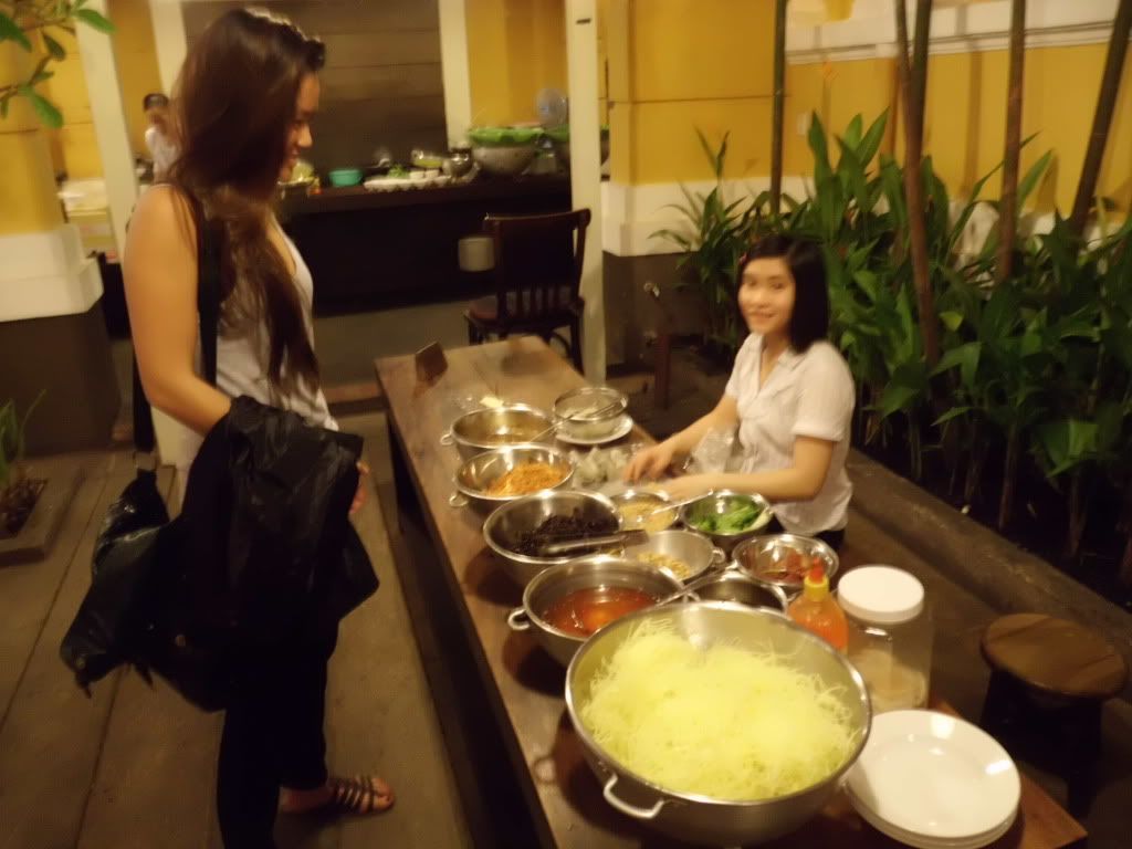 Sinon nous avons trouvé notre cantine: "Nha Hang Ngnon", j'avais déjà posté des photos de l'endroit... au style colonial. Le concept de ce restaurant est de proposer tous les plats que l'on retrouve dans la rue du Vietnam en allant du Nord au Sud! Et franchement les plats y sont bons, et beaux! Certes plus chers que dans la rue, mais plus propres, et dans un beau cadre. Le restaurant se situe au 160 Pasteur Street, District 1.
