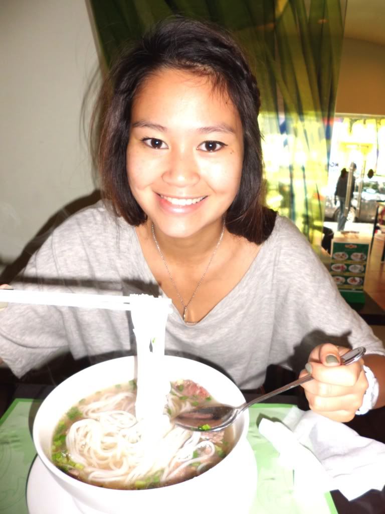 - Samedi midi, c'était Vietnamien, au restaurant « Pho 24 », une chaine, proposant une soupe vietnamienne appelee "pho". Moi je l'ai prise au bœuf "tai", c'est à dire que la viande est coupée finement et crue, et cuit avec le bouillon bouillant! Ce qui fait que selon moi la viande est tendre! Mais il existe du Pho Ga, c'est à dire au poulet...