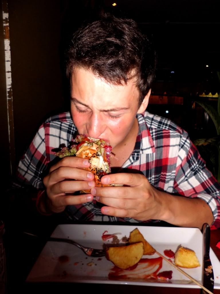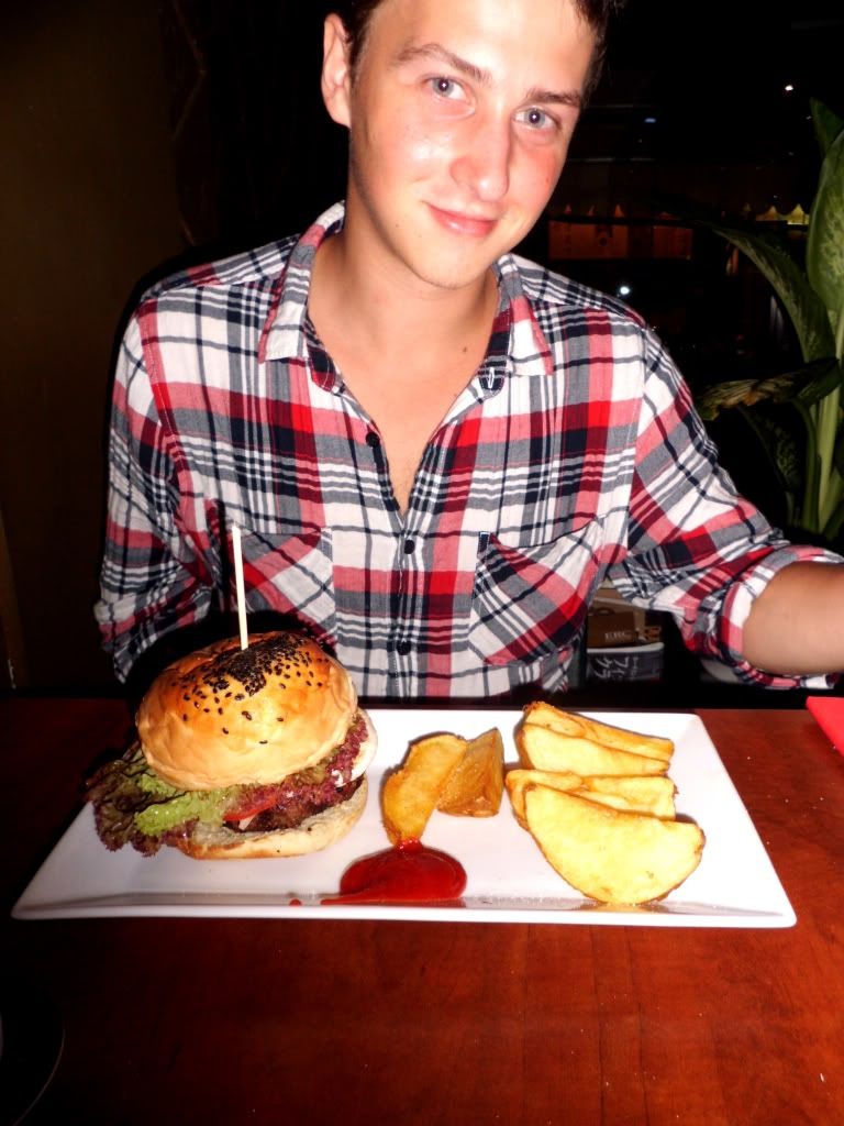 - Samedi soir, nous avons mangé... AMERICAIN. Oui je sais honte à nous... manger américain alors qu'on est au Vietnam. On aime bien changer, et on mange TOUS les jours vietnamiens!! Et puis on veut tester pour voir si les restaurants étrangers sont bons...