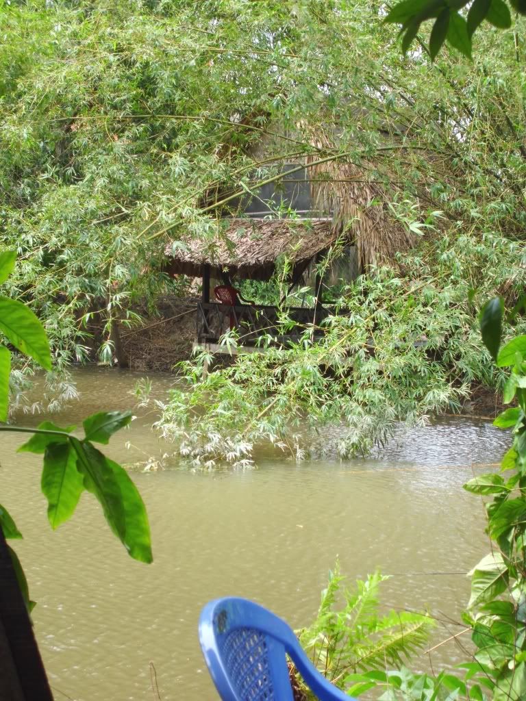 Le restaurant se trouve donc à la limite de la banlieue de Ho Chi Minh City, il a ainsi un air de campagne…Plein de petites paillotes se trouvent autour d’un étang, appartenant au restaurant. Chaque paillotte est privatisée. Pour un groupe = une paillotte.
