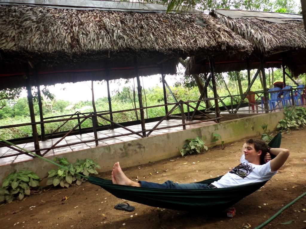 On y mange de bons « hot pot » (fondues), ou d’autres mets vietnamiens. Des cannes à pêches en bambous sont disponibles, ainsi que des hamacs.